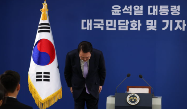 윤석열 대통령은 7일 김건희 여사 관련 각종 의혹과 정치 브로커 명태균씨 관련 논란 등 최근 국정 난맥상에 대해 고개 숙여 사과했다.