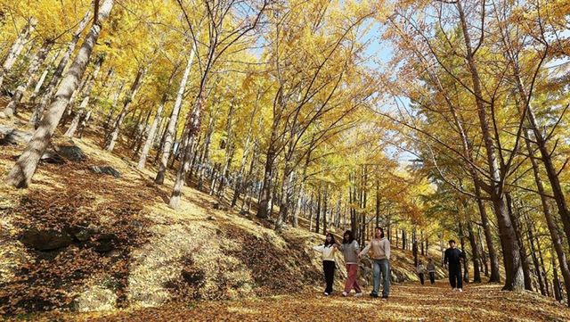 특히 늦가을이면 이 숲은 황금빛 은행잎으로 뒤덮이며 일대 장관을 이룬다. 은행나무들이 햇볕을 받기 위해 하늘을 향해 우뚝 솟은 모습은 마치 자연이 만들어낸 예술 작품처럼 보인다. 이곳은 자연 그대로의 아름다움을 간직한 채, 약 5km 길이의 트레킹 코스도 마련돼 있다. 코스를 따라 걷다 보면 중간중간 편히 쉴 수 있는 나무의자와 명상장, 숲의 전경을 한눈에 내려다볼 수 있는 전망대도 있어 방문객들에게 여유로운 휴식 시간을 제공한다.