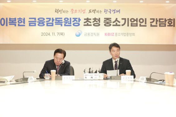 이 원장은 이날 금융권 및 중소기업 관계자들과 가진 간담회에서 “중소기업금융 실태를 보면 신용보다는 담보와 보증에 크게 의존하는 현상이 고착돼 있는 상황”이라며 이같이 말했다. 이날 간담회에는 김기문 중소기업중앙회장, 김성태 기업은행장, 이재근 국민은행장 등이 참석했다.