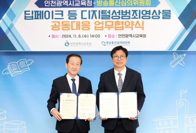 [파이낸셜경제=김영란 기자] 인천광역시교육청은 지난 6일 방송통신심의위원회와 딥페이크 등 디지털 성범죄 영상물 공동 대응을 위한 업무협약을 체결했다.