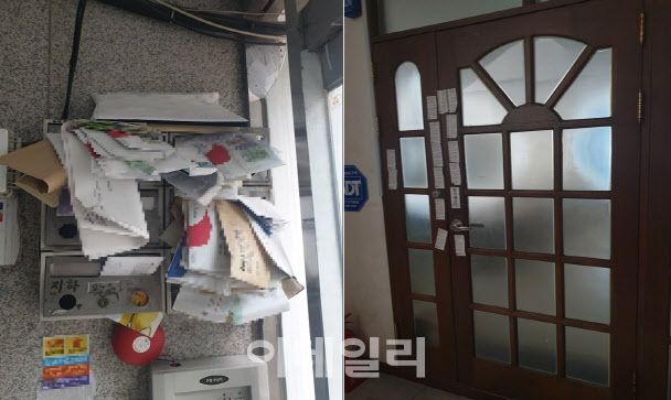 주소세탁에 활용된 공유오피스들. 우편함에 우편물이 방치돼 있거나(왼쪽), 잠긴 출입문에 우편물 도착 스티커가 덕지덕지 붙어있다.(사진=국세청)