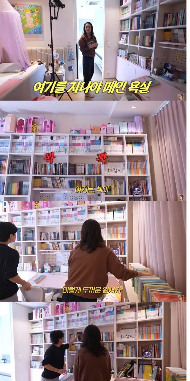 방안을 가득 채운 책들이 눈길을 끌었다. PD는 "두꺼운 원서가"라며 "이걸 읽는 거냐"라고 물었다. 한가인은 "다독한 지가 오래돼서 속독이 됐나보다"라고 설명했다.