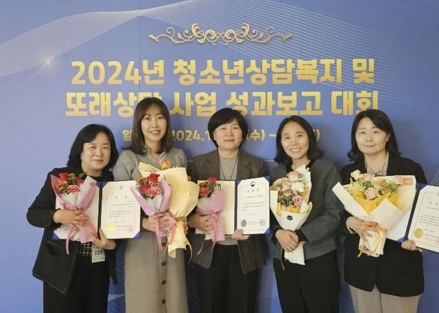 또 의왕시청소년상담복지센터 김문선 상담지원팀장이‘우수상담자’ 부문 한국청소년상담복지개발원 이사장 표창을 수상했으며, 강민정 학부모가‘우수상담체험수기’로 이사장상을 수상하는 등 3관왕의 쾌거를 이뤘다.