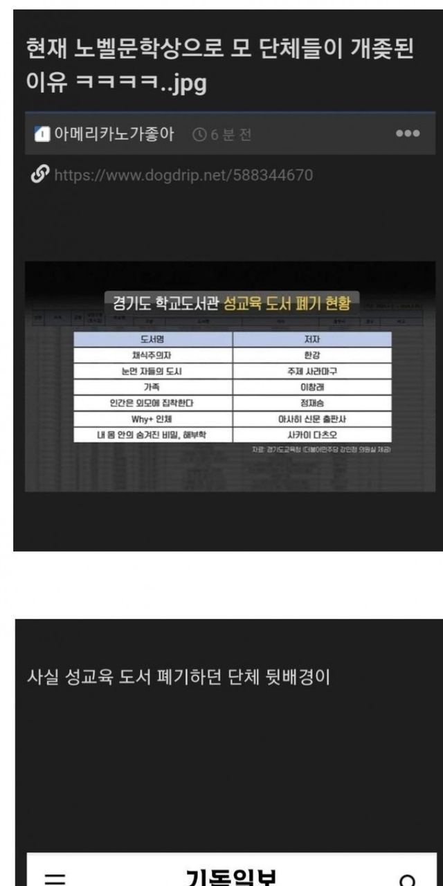 노벨문학상 받은 작품을 동성애, 조기성애 혼란 조장등의 이유로 도서폐기 시킴.