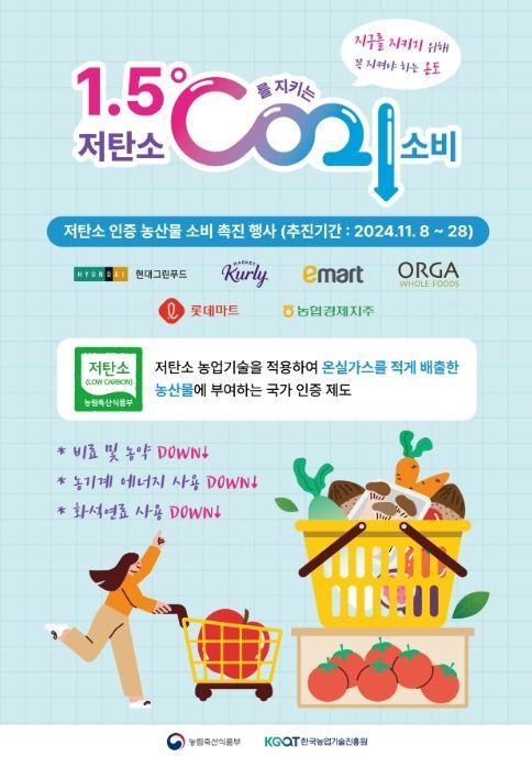 농식품부 박정훈 동물복지환경정책관은 “저탄소 농법으로 농산물을 생산하는 농업인들이 증가하고 있다.”라며, “소비자들도 지구의 온도를 낮추는 저탄소 농산물 소비에 적극 동참하기를 바란다.”라고 밝혔다.