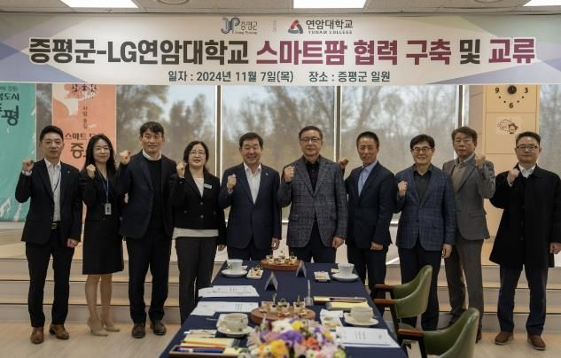 이번 교류는 지난 9월 양 기관이 체결한 스마트팜 협력 구축 업무협약의 후속 조치로, LG연암대학교 육근열 총장을 비롯한 기획처장, 사무처장 등 주요 관계자들이 증평을 방문해 이뤄졌다.