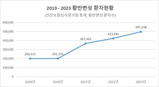 건강보험심사평가원에 따르면 2019년 20만471명이었던 황반변성 환자수가 2023년에는 49만7,338명으로 늘어 최근 5년동안 약 2.5배 증가한 것으로 나타났다