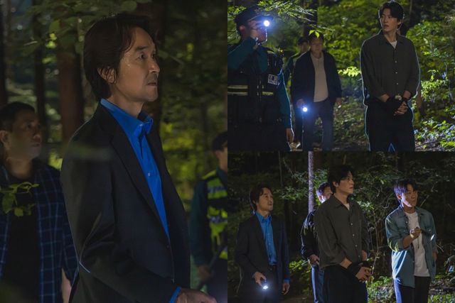 이런 가운데 공개된 8회 스틸컷에는 태수와 경찰들이 준태와 함께 야산에서 ‘송민아 살인사건’을 재조사하는 장면이 담겨 있어 눈길을 끈다. ‘송민아 살인사건’에서 아직까지 의문으로 남은 것이 바로 사라진 시체의 행방이다. 준태는 모든 것을 체념한 듯한 표정으로 경찰들을 데리고 야산 어딘가로 향한다. 태수와 경찰들의 손전등 불빛이 어딘가로 향하고, 과연 무언가를 발견한 것인지 궁금증이 치솟는다.