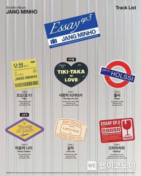소속사 호엔터테인먼트는 지난 6일 공식 SNS를 통해 장민호의 세 번째 미니앨범 '에세이 ep.3'의 트랙리스트 이미지를 공개했다.