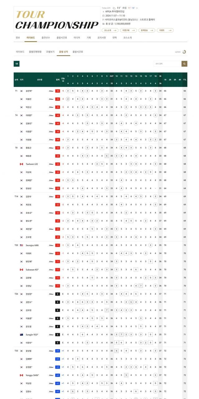 ▲투어 챔피언십 1라운드 순위
