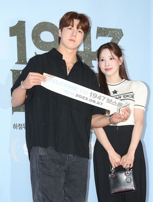 '환승연애' 이나연, 남희두(왼쪽)가 지난해 서울 송파구 롯데시네마 월드타워점에서 열린 영화 '1947 보스톤‘(감독 강제규) VIP 시사회에서 포즈를 취하고 있다. / 뉴스1