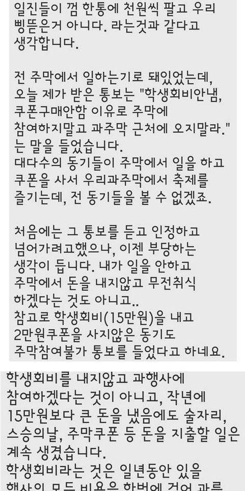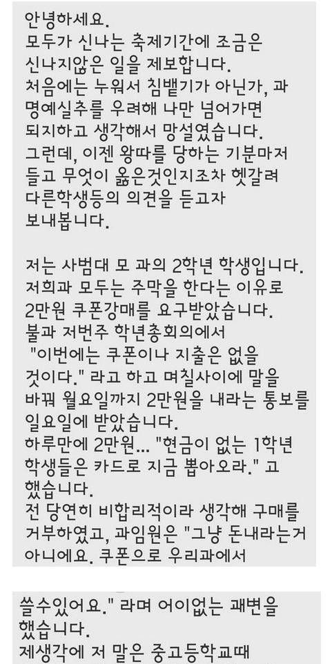 어느 사범대 축제 2만원 쿠폰 강매 논란,,