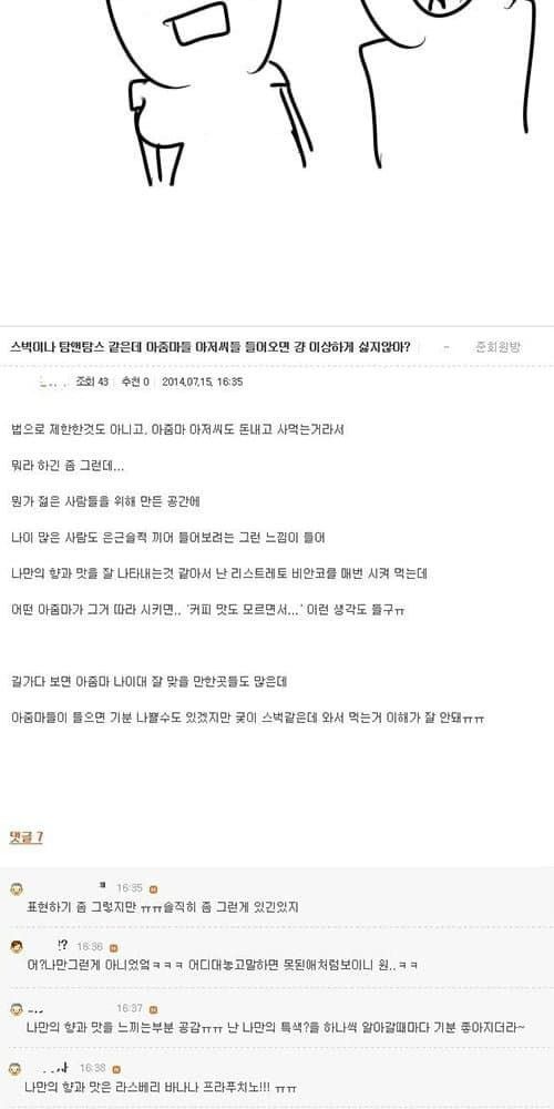 커피맛도 모르면서 스벅오는 틀딱들 짱싫어ㅜ