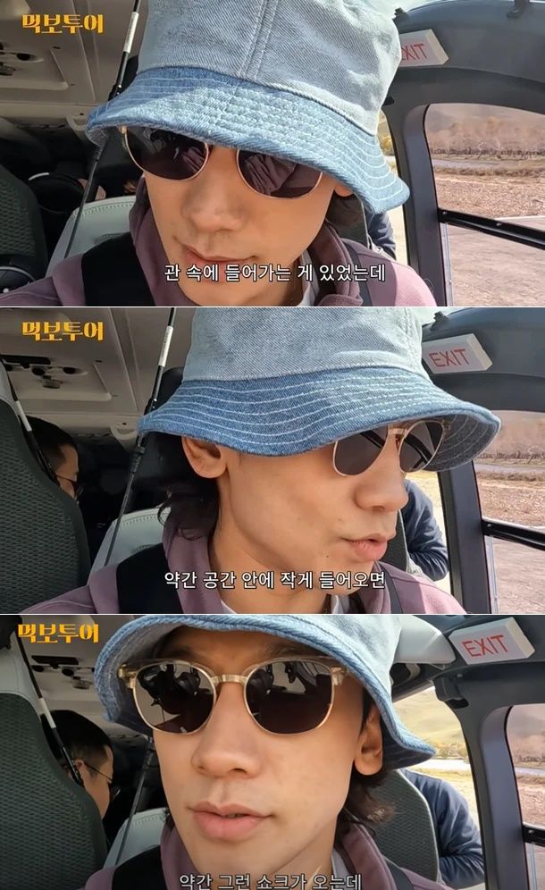 고민 끝에 헬리콥터 앞자리에 탑승한 비는 "옛날에 영화 찍을 때 관 속에 들어가는 장면이 있었는데 그때부터 못 움직이거나 공간 안에 작게 들어오면 폐소공포증이 있다. 약간 쇼크가 온다"라며 한숨을 쉬었다.