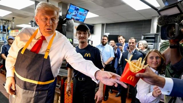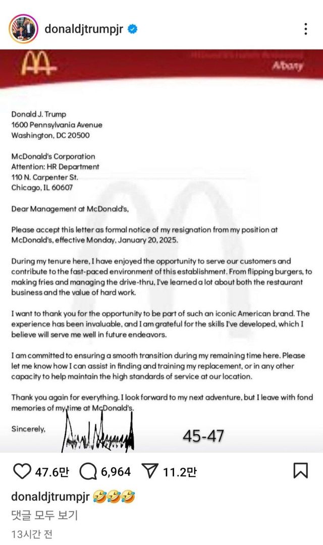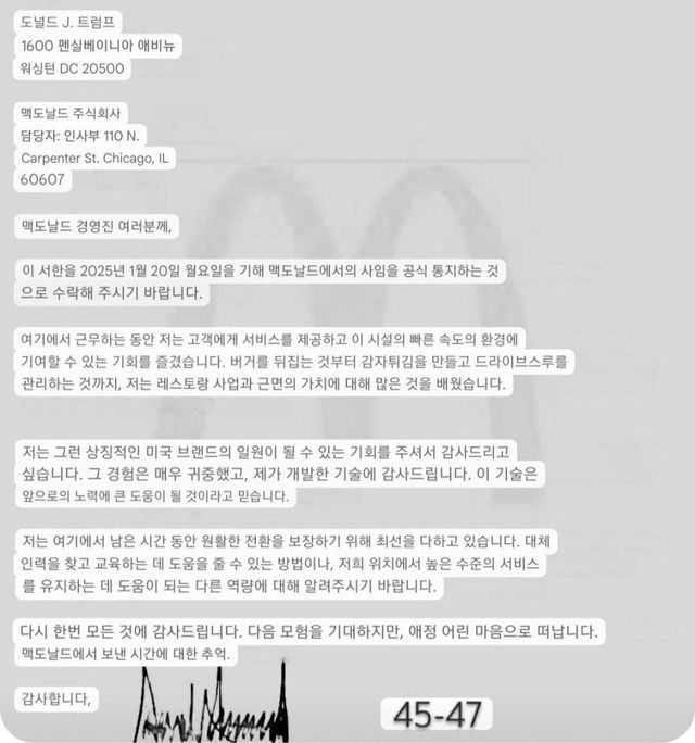 일했던 맥날에 인사 하고 떠나는 트럼프