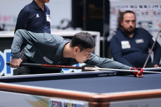 (엑스포츠뉴스 이정범 기자) '서울 3쿠션 당구월드컵' 최완영 선수의 경기 모습이 눈길을 끈다.