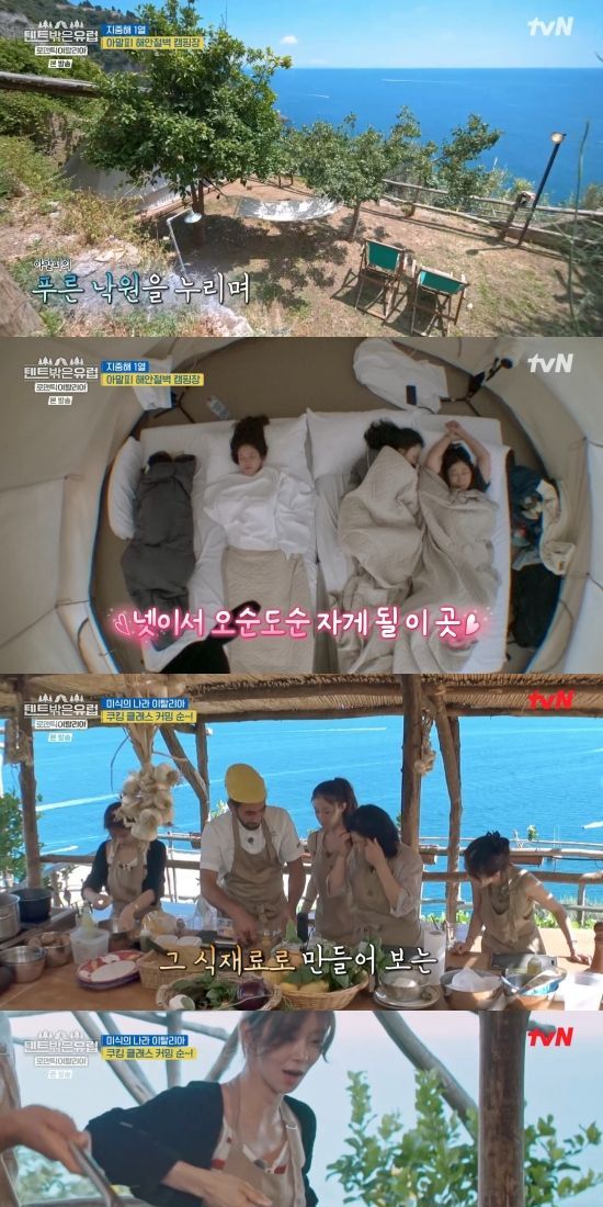 이후 멤버들은 아말피 해안절벽에 있는 캠핑장에 도착했다. 캠핑장은 지중해가 한눈에 보이는 아름다운 뷰가 눈길을 끌었고, 멤버들은 2박을 묵기로 했다.