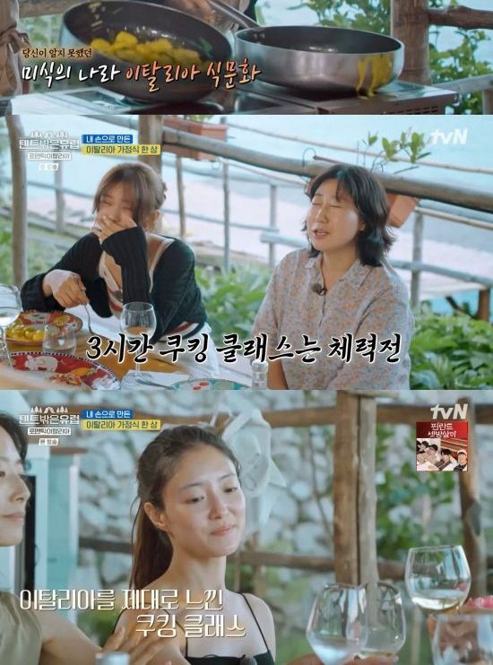 멤버들은 셰프의 지도에 따라 요리했고, 완성된 요리로 식사를 했다. 라미란은 "3시간 걸렸네. 발이 되게 아프더라고"라며 털어놨다.