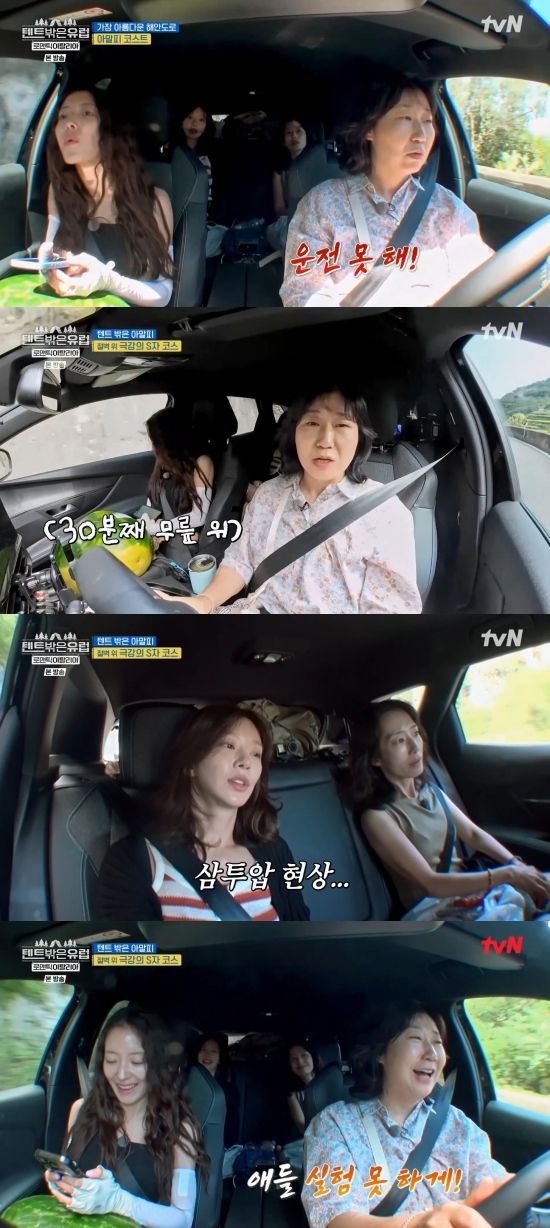 이주빈은 "상대편에서 오는 차가 너무 확확 달린다"라며 거들었고, 라미란은 "공터 가서 하자. 연습을 시켜줘야 한다"라며 밝혔다.