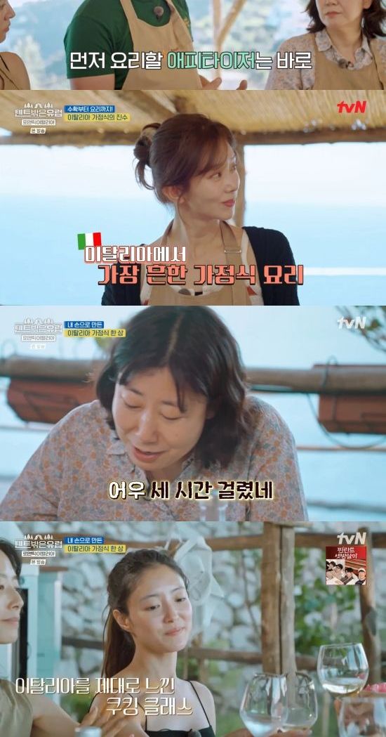 7일 방송된 tvN '텐트 밖은 유럽-로맨틱 이탈리아 편'(이하 '텐트 밖은 유럽')에서는 라미란, 곽선영, 이주빈, 이세영이 쿠킹 클래스에서 이탈리아 가정식을 배우는 장면이 전파를 탔다.