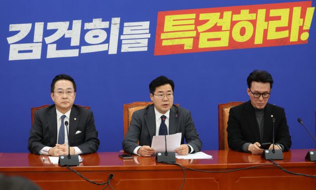 민주당은 오는 14일 본회의에서 김건희 특검법을 처리할 계획이다. 윤 대통령이 또다시 재의요구권(거부권)을 행사할 경우 28일 본회의에서 재표결까지 진행할하겠다는 방침이다. 박 원내대표는 "앞서 두번의 특검법이 부결되기는 했지만 세번째 특검법이 발의돼있는 현재의 시점에서는 아마 그때와는 다른 분위기, 정국이 아닐까 생각한다"며 "윤석열 정부와 차별화를 이루기 위해 노력하는 한동훈 대표도 뭔가 결단해야 할 시점"이라고 말했다.