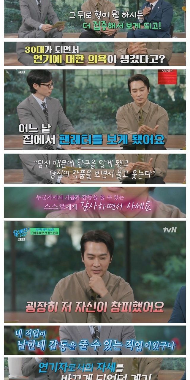 송승헌 : 그 팬레터를 20대 때 봤더라면 더 좋은 배우됐을듯