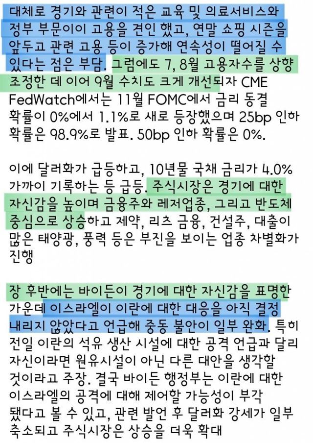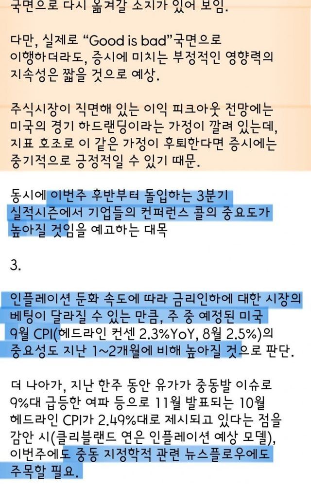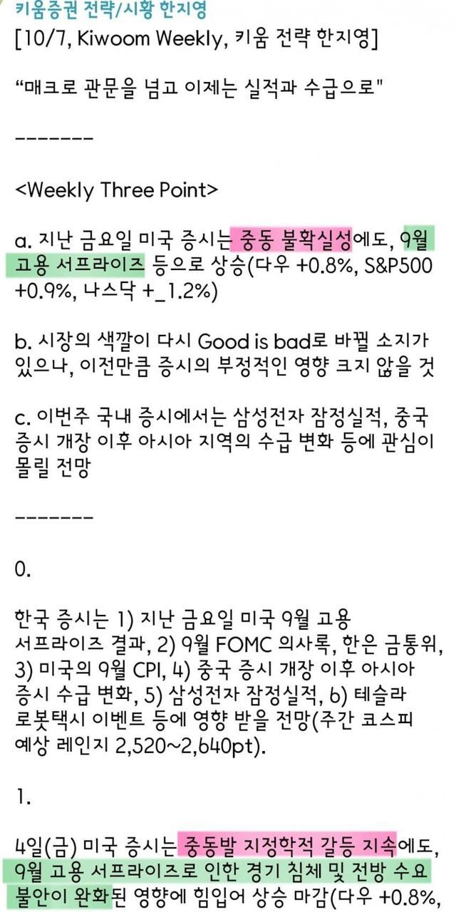 하이라이트초록색 : 현상황에서 긍정적파란색 : 중립 또는 긍정 부정 혼재분홍색 : 현상황에서 부정적