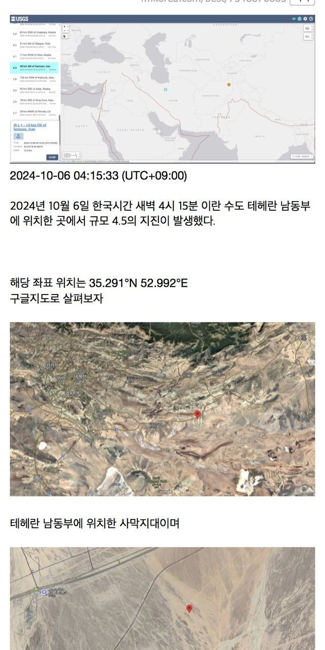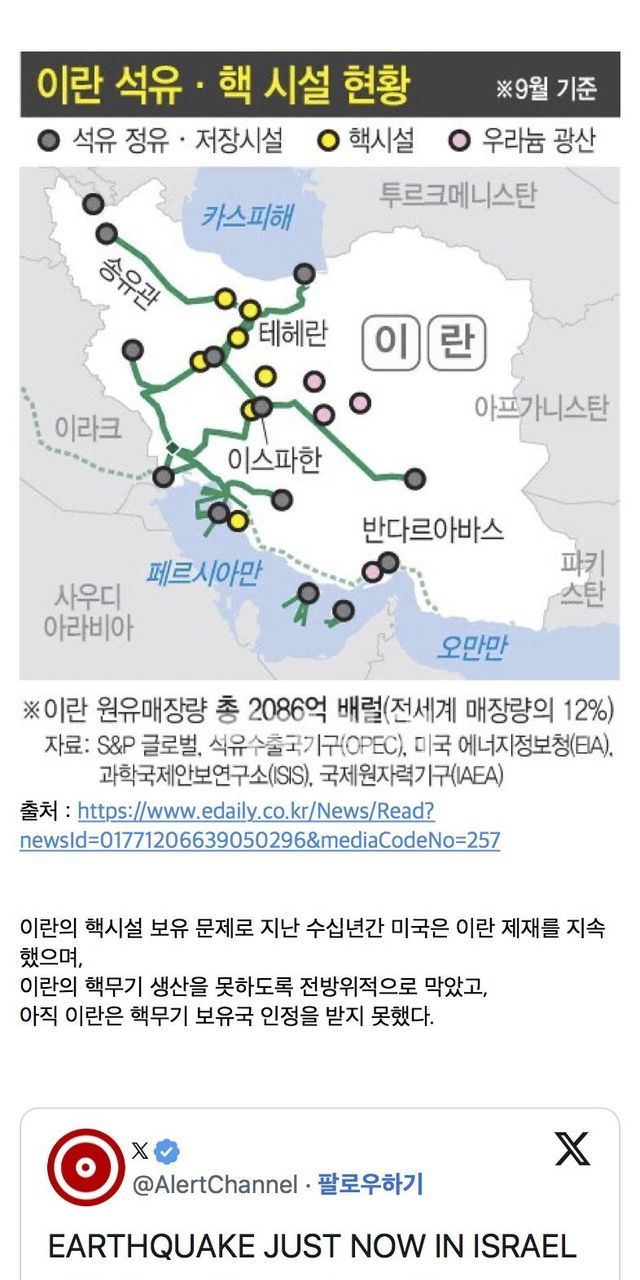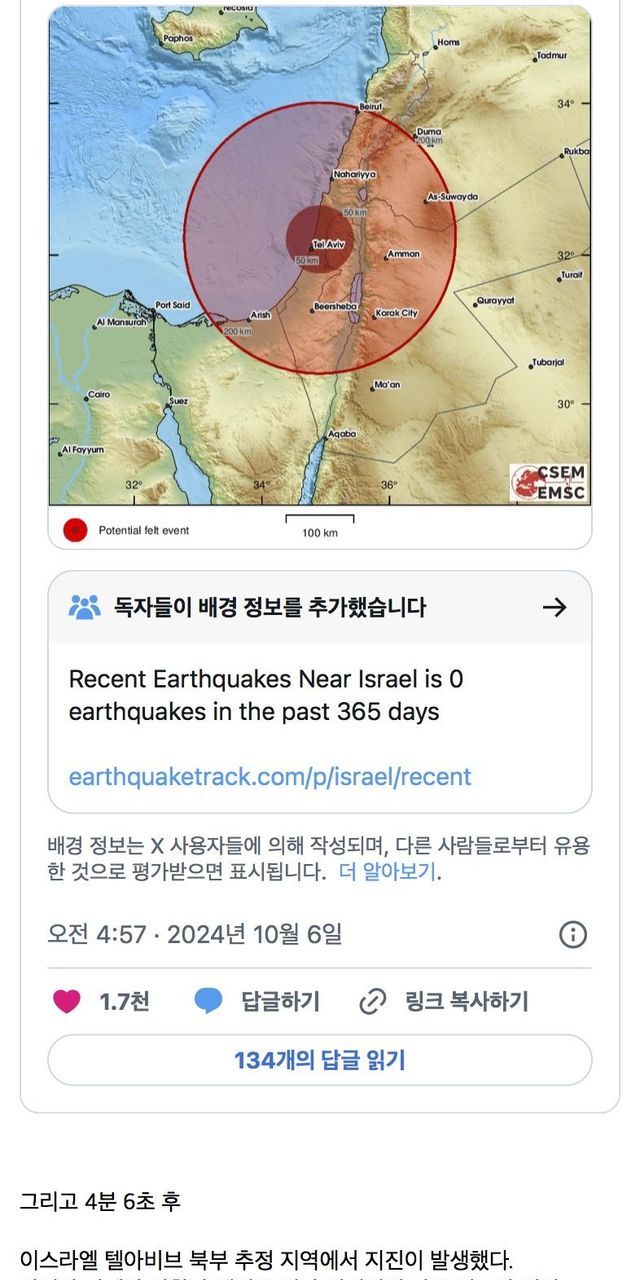 이란 지진 4분후 이스라엘에서 지진 ㄷㄷ