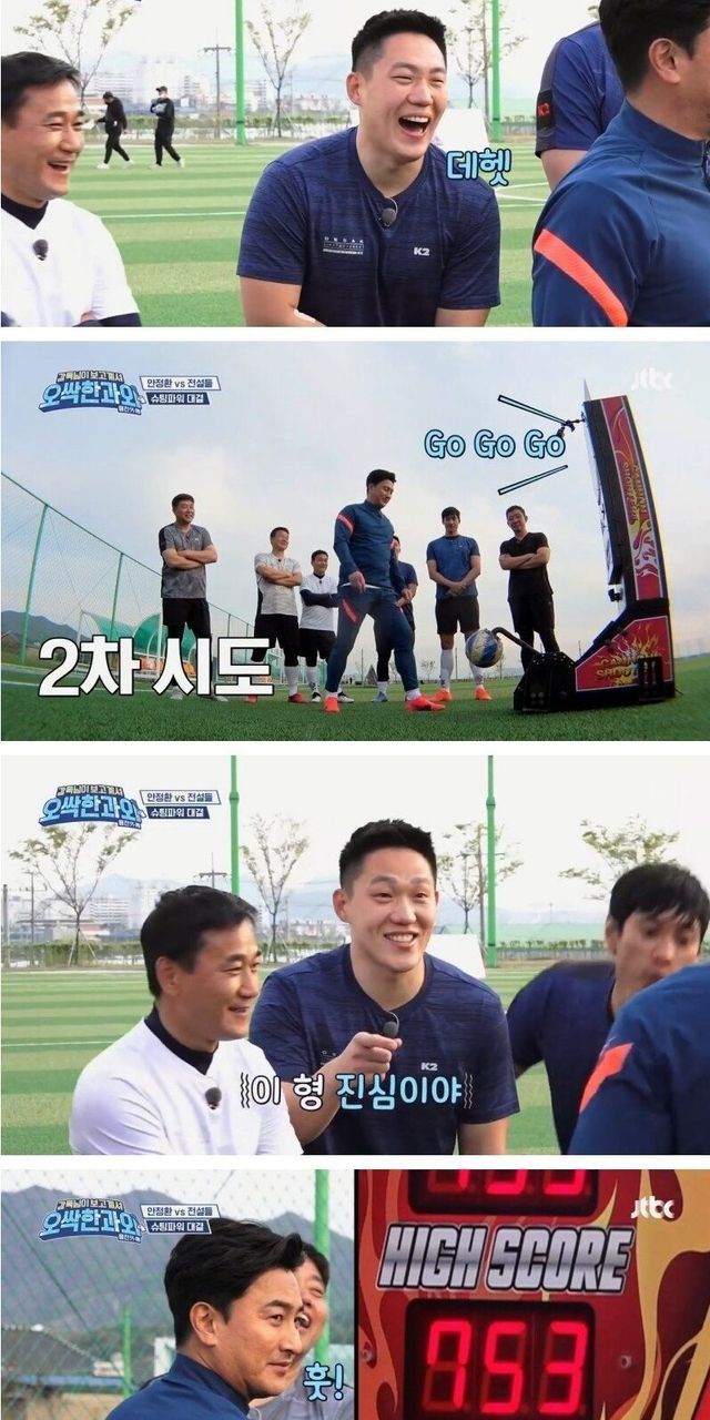 안정환과의 슈팅 파워 대결.