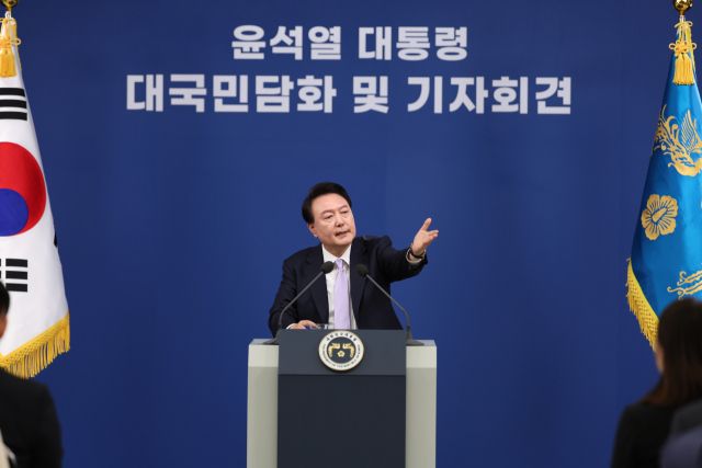 윤 대통령은 7일 대국민담화·기자회견 자리에서 이같이 말하고 "후년(2026년)은 의료계와의 협의체에다 의견을 내라고 했으니 같이 논의해서 합리적인 의견이라면 거기에 따라서 하면 되는 것"이라고 했다.