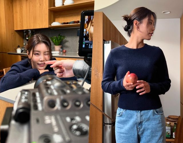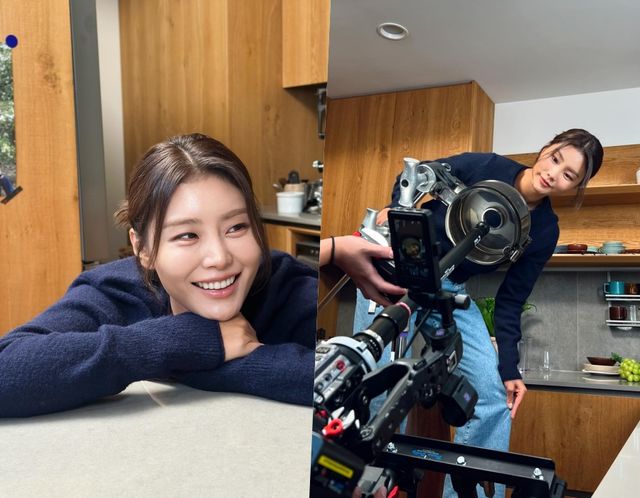 사진 속 강소연은 청바지에 네이비 니트를 입고 촬영에 진지한 자세로 임하고 있다. 강소연은 촬영 감독님의 손짓에 윙크를 해보이며 완벽한 포즈를 완성해 감탄을 더한다.