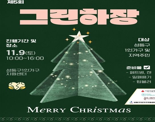 또한, 같은 날 성동구1인가구지원센터 주관으로 지역 내 1인 가구를 대상으로 ‘제5회 그린하장’ 행사도 진행된다.