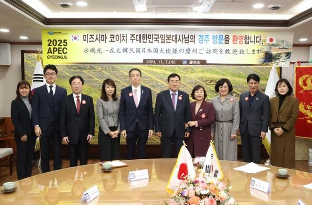 주낙영 시장은 미즈시마 대사의 방문을 환영하며, 경주에서 열릴 예정인 2025 APEC 정상회의와 현재 진행 중인 2024 재팬위크 등 현안에 대해 의견을 교환했다.