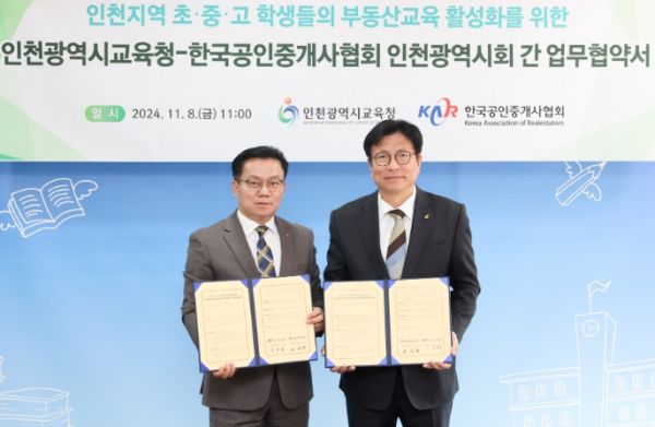 [한국미디어뉴스통신 박말희 기자] 인천광역시교육청은 8일 한국공인중개사협회 인천광역시회와 업무 협약을 체결하고, 인천 초·중·고 학생들의 전세 사고 예방을 위한 실무 중심의 부동산 교육을 강화한다고 밝혔다.