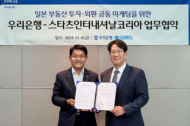 우리은행은 일본 부동산 기업 스타츠인터내셔날코리아와 일본 부동산 투자 원스톱 서비스 제공을 위한 업무 협약을 체결했다고 8일 밝혔다.