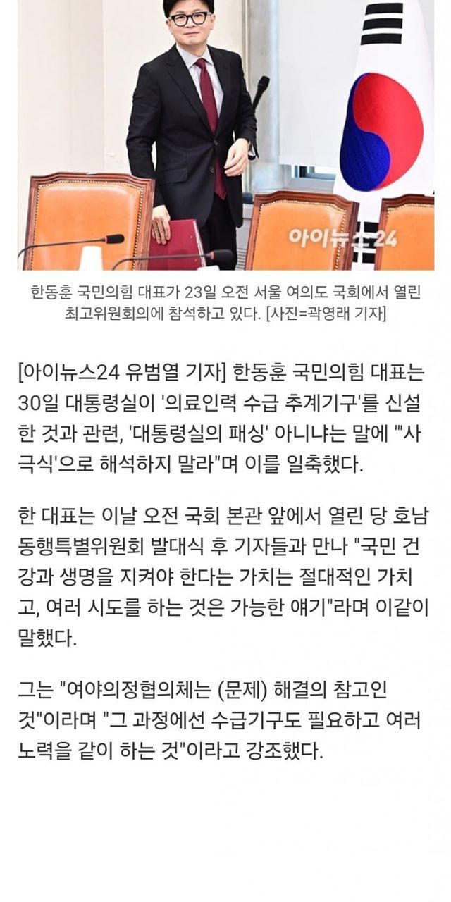 -용산 ‘의료수급 추계기구’ 한동훈 패싱? 韓: 사극식 해석 말라