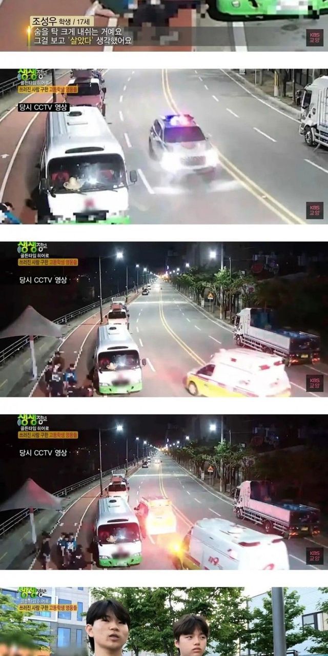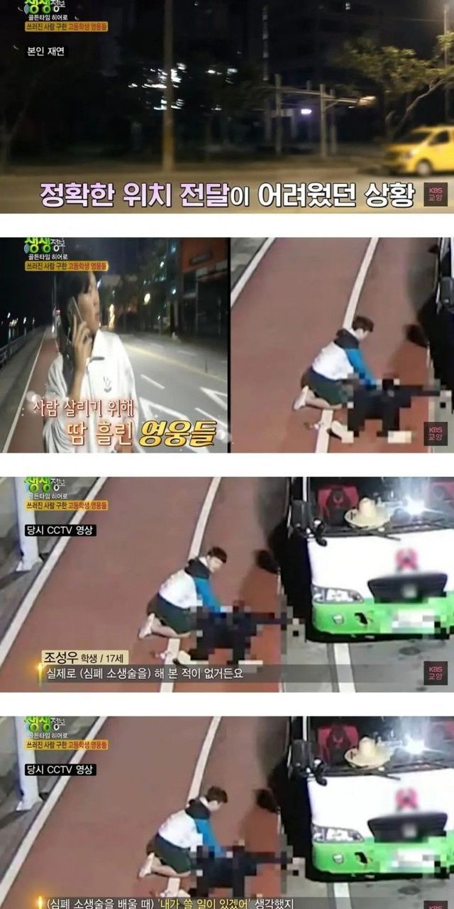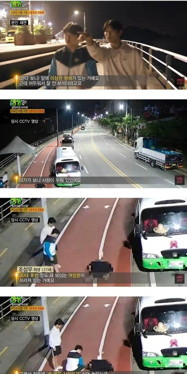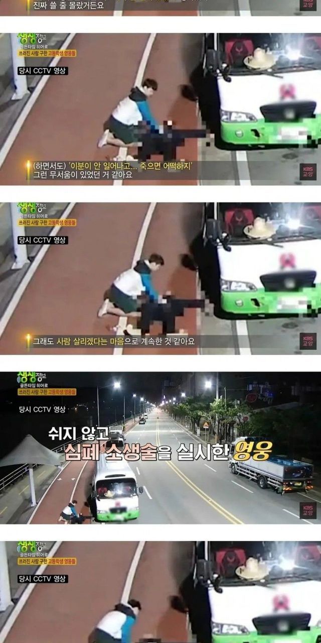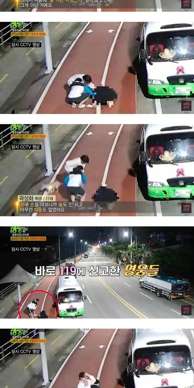 새벽에 사람 없는 곳, 버스에 가려진 채 쓰러진 여성을 살린 고등학생들.