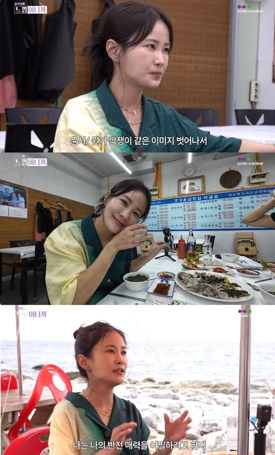 김지민은 지난 7일 공개된 유튜브 채널 '느낌아니까'에서 정이랑, 한윤서와 어달리 해변에서 찐친 텐션 200% 코미디 호흡을 뽐냈다.
