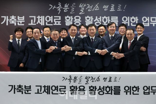 환경부와 농림축산식품부, 농협경제지주, 한국남부발전은 8일 서울 종로구 농협카드 본사에서 ‘가축분 고체연료 활용 활성화 업무협약’을 체결했다고 밝혔다.