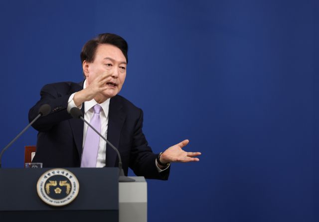 윤 대통령은 7일 용산 대통령실에서 열린 기자회견 말미에 정 대변인이 "다음 질문을 받겠다"고 하자 "하나 정도 하자, 이제 하나 정도만 해, 이제 목이 아프다"라고 말했다. 정 대변인이 멈칫하자 "그래, 더 할까?"라고 또 반말을 하며 웃음을 지었다.