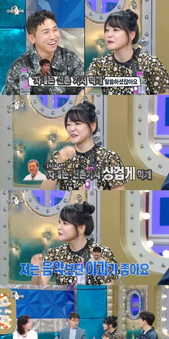 이날 김소현은 "제가 이번에 라스 나간다고 하니까 저희 바깥양반이 '무슨 특집에 나가' 이러더라"며 "'명성황후' 30주년 연습하고 있어서 부부특집을 기대하고 있었는데, 무슨 특집이냐고 물어보더라. 왜 저만 나가냐고 물어보더라"고 웃은 뒤 "제 입으로 말하기 민망하다"고 털어놨다.