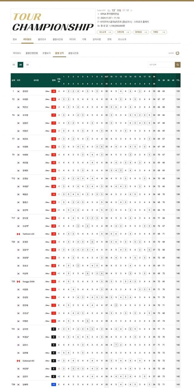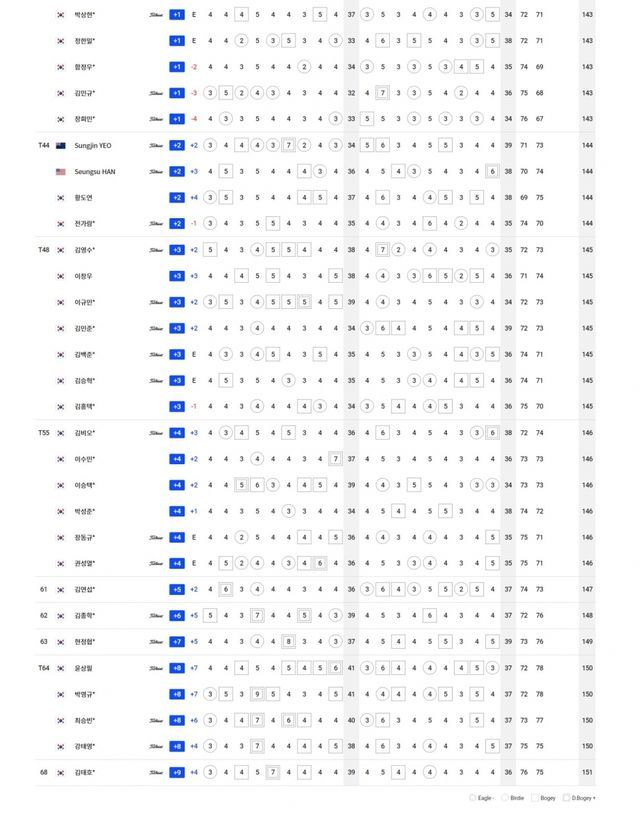 1.장유빈 -9, T2.이대한-박은신 -8, T4.조우영-김동민-이동민 -7, T7.최진호-이정환 -6, T9.이태희-최민철-정재현 -5, T12.강경남-옥태훈-배용준-황중곤-송민혁 -4, T17.문도엽-오승택-이태훈 -3, T20.문경준-유송규-이상희 -2, T25.신용구-조민규-이형준 -1, T31.김우현-김한별-허인회 E, T38.박상현-정한밀-함정우-김민규 +1, T44.한승수-전가람 +2, T48.기영수-김백준-김홍택 +3, T55.김비오-이수민-이승택 +4, 61.김연섭 +5, 62.김종학 +6, 63.현정협 +7, T64.윤상필-최승빈 +8, 68.김태호 +9.