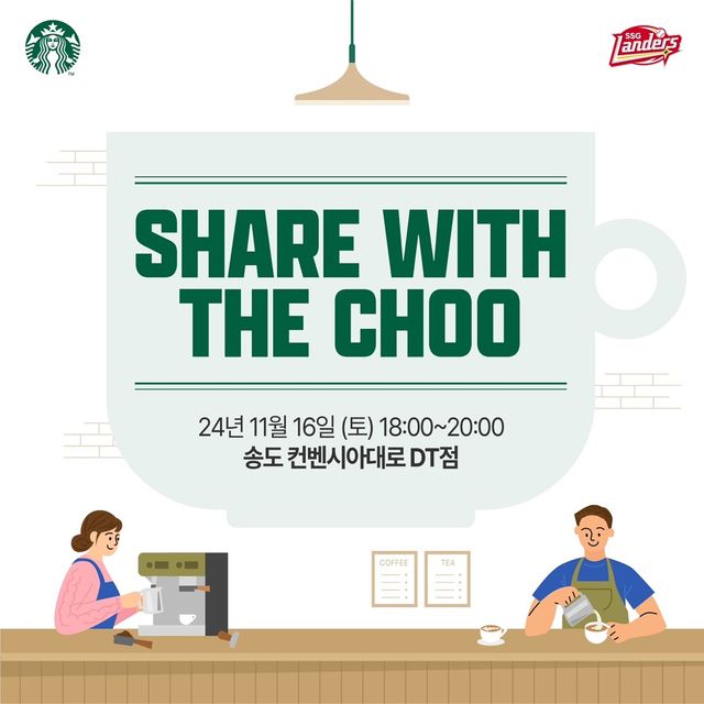 추신수는 올 시즌 은퇴를 기념해 그동안 많은 응원을 보내준 팬들과 뜻깊은 시간을 보내고자 했으며, 그 일환으로 스타벅스와 함께 'SHARE WITH THE CHOO' 프로그램을 구단과 함께 기획했다. 이번 프로그램에는 추신수와 함께 하재훈, 박종훈도 참가하며, 선수들은 커피를 포함한 식음료와 참가 기념품을 팬들에게 전달한다. 참가 기념품으로는 추신수와 스타벅스의 마스코트인 베어리스타가 새겨진 텀블러가 제공될 예정이다.