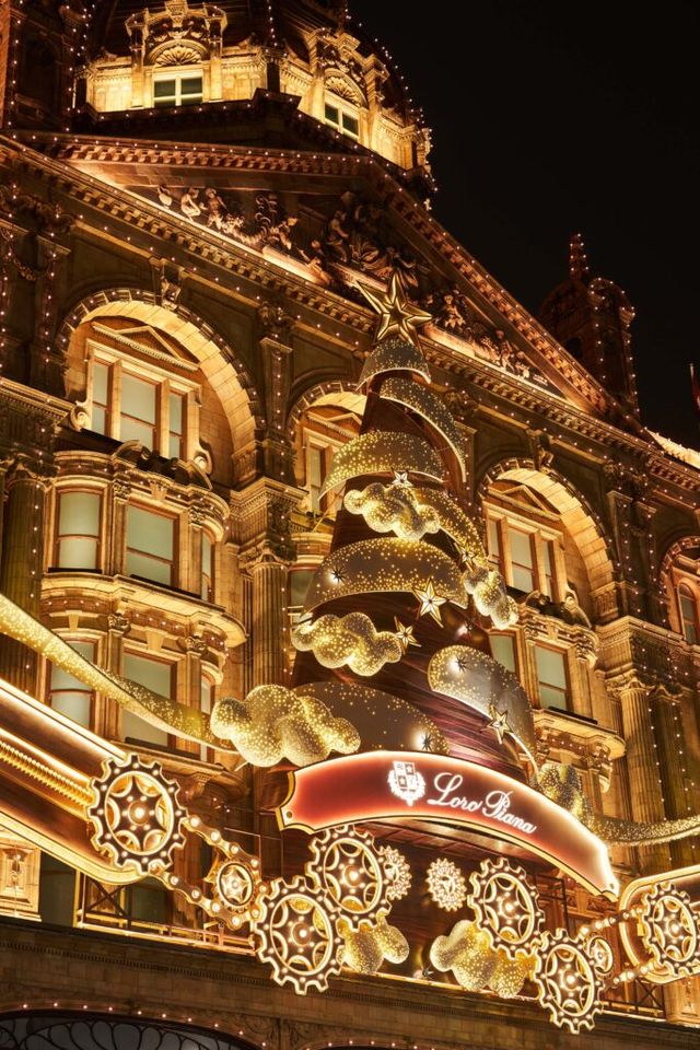 먼저 해롯의 파사드에서는 구름처럼 가벼운 로로피아나의 섬유가 컨베이어 벨트를 타고 이동해 패브릭이 되고, 17미터 높이의 우아한 크리스마스 트리로 변모하는 과정을 볼 수 있습니다. 동화적인 애니메이션을 통해 백화점 전면에 기분 좋은 홀리데이 분위기를 흩뿌리죠.