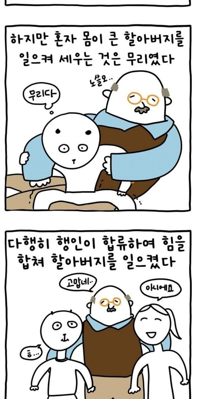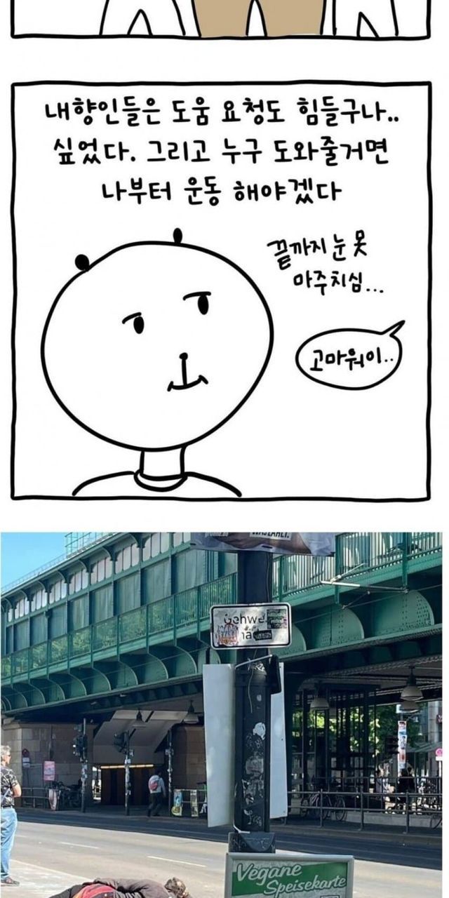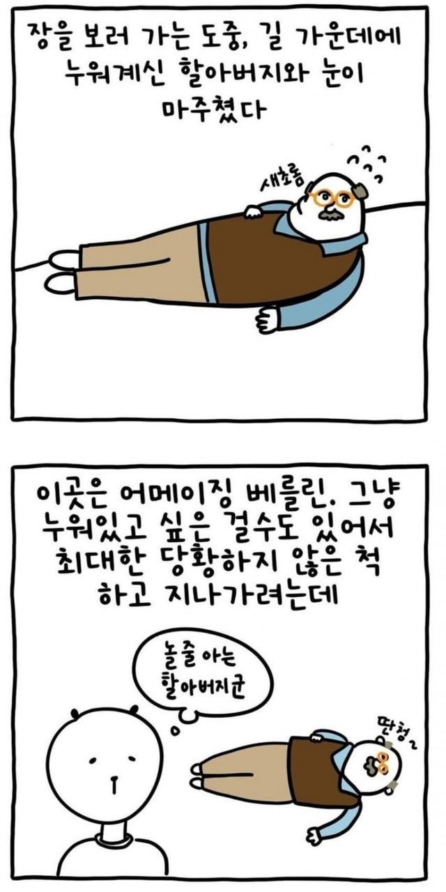 외국 길에 누워있던 할아버지 만화 실제 사진있음 ㅋㅋㅋ.