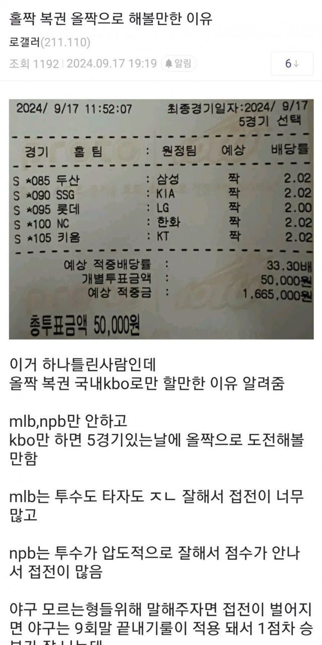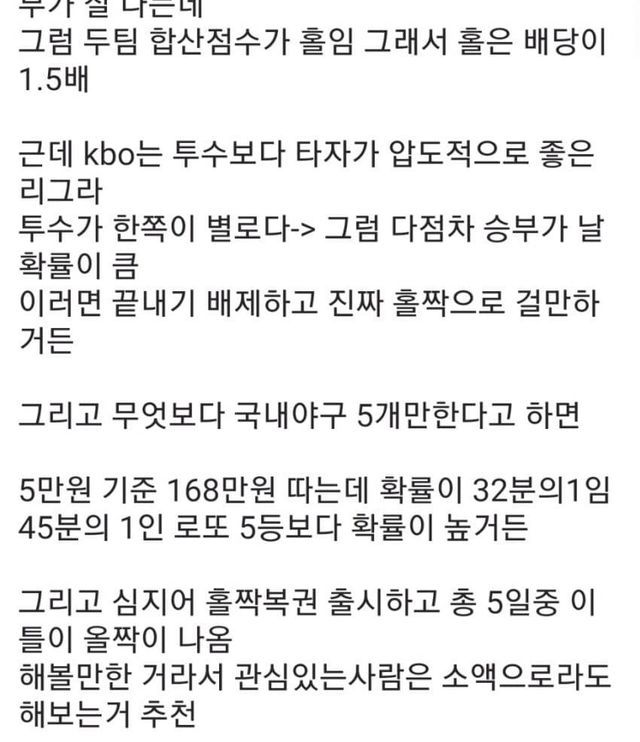 야구나 축구에서 양팀의 점수를 합한게 짝수인지 홀수인지 맞추는 게임
