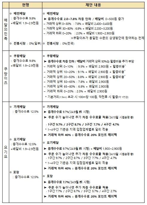 배달플랫폼 3개사가 제안한 내용을 종합하면 다음과 같다.