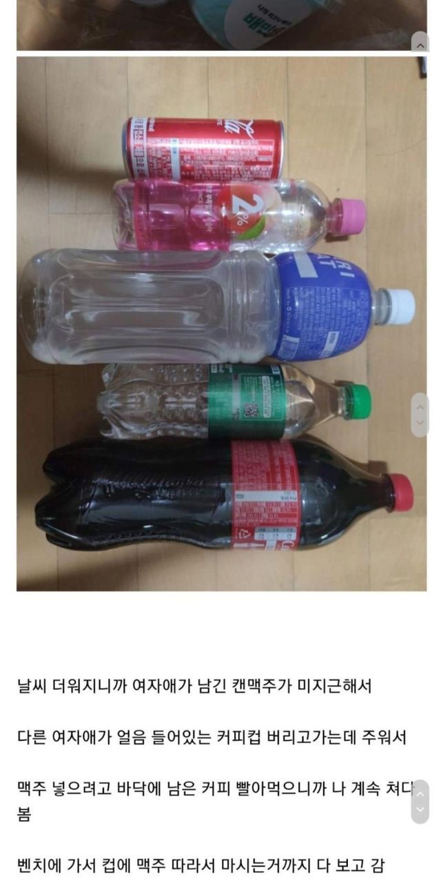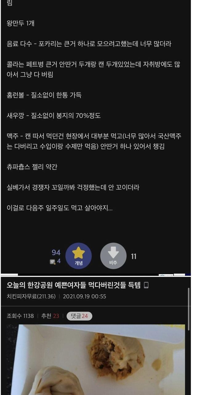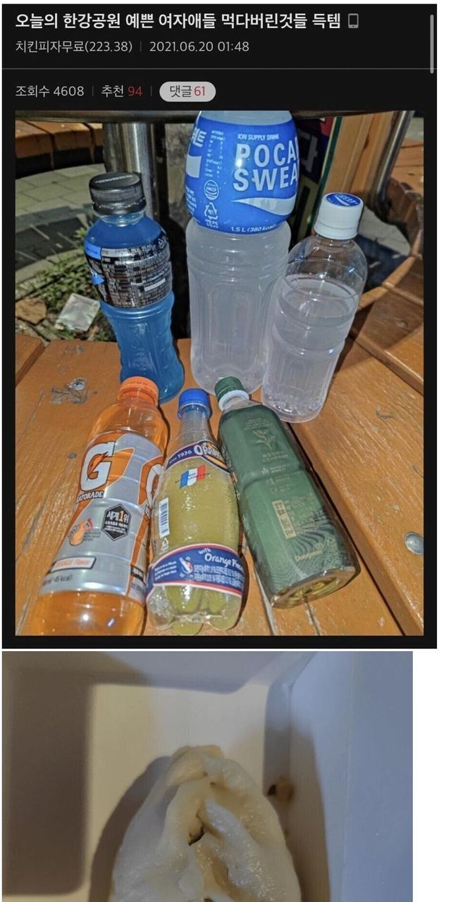 오늘의 한강공원 예쁜 여자애들 먹다버린것들 득템