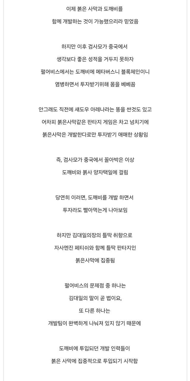 올해초 올라온 펄어비스 도깨비 근황 글