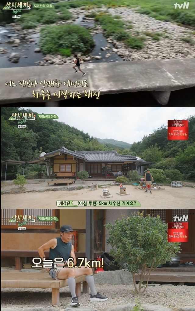 8일 방송된 tvN '삼시세끼 라이트(Light)'에서는 지리산 세끼 하우스에서 여전히 아침 루틴을 지키는 부지런한 유해진의 모습이 그려졌다.
